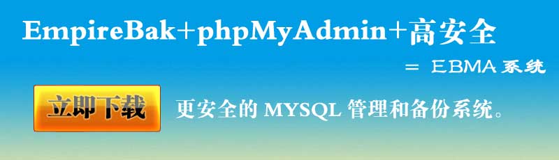| 答:“EmpireBak+phpMyAdmin+高安全”整合包就是EBMA系統(tǒng)、開源免費。字母取自“Empire”的E、“Bak”的B、“My”的M、“Admin”的A。 |