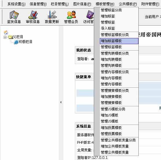 | 1、登陸后臺(tái)-》“模板管理”-》“增加標(biāo)簽?zāi)0濉被颉肮芾順?biāo)簽?zāi)0濉保缦聢D: | ||||||||||||
