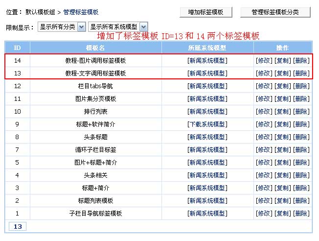 即標(biāo)簽?zāi)0宓腎D值,是我們在帝國CMS后臺(tái)增加標(biāo)簽?zāi)0搴�,由CMS系統(tǒng)自動(dòng)分配的。一個(gè)標(biāo)簽?zāi)0鍖?duì)應(yīng)一個(gè)ID。