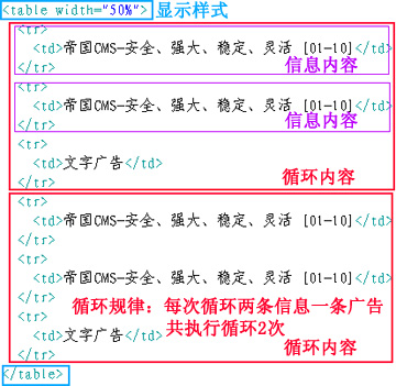 列表頭和列表尾用[!--empirenews.listtemp--]表示,是固定的,代表循環(huán)的開始和結(jié)束。