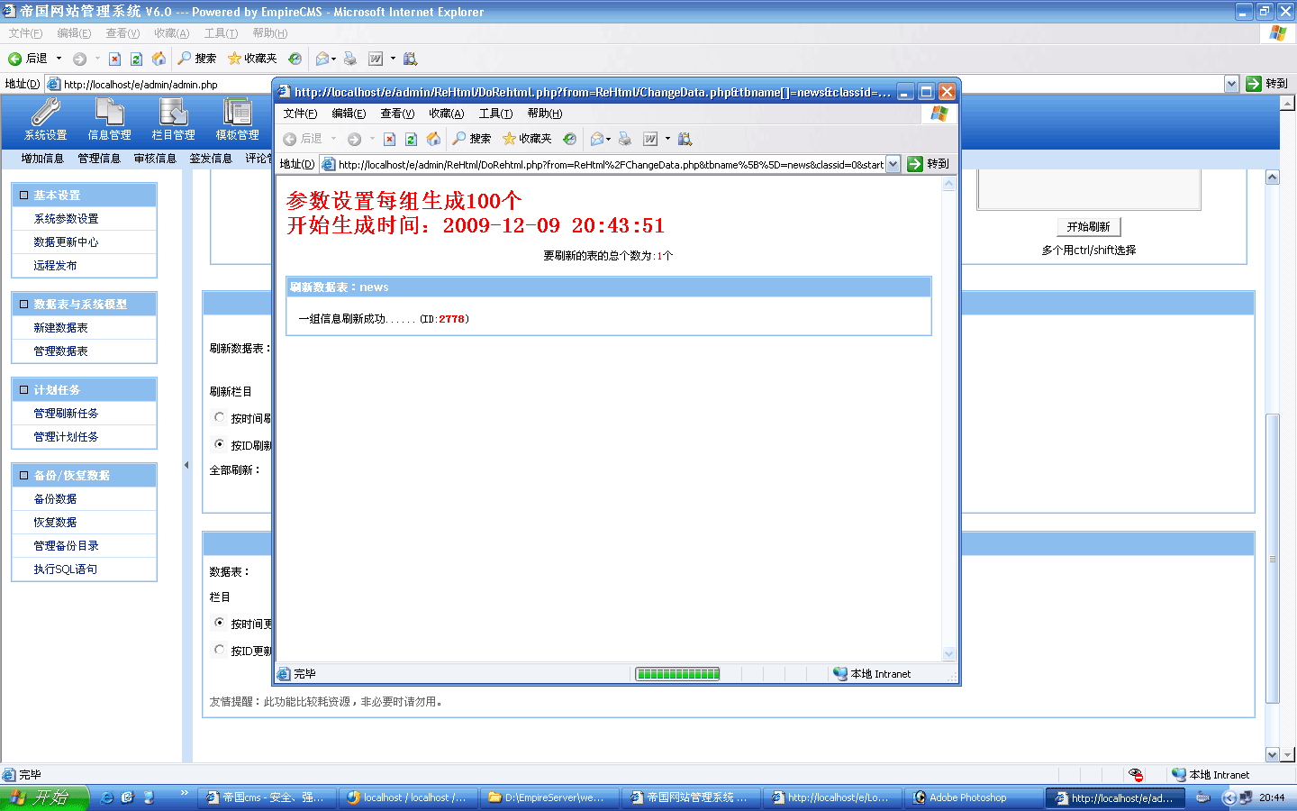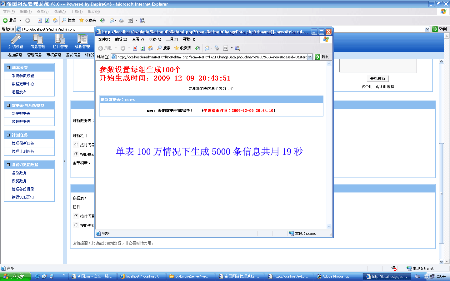 ![]() 生成過(guò)程截圖: ![]() 5000條生成時(shí)間:19秒 生成后的欄目目錄: |