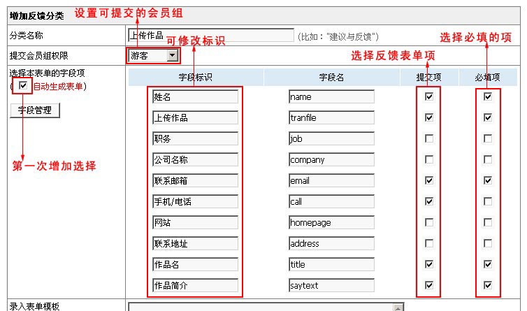 (小貼士:如果要更改反饋表單界面,可以修改分類,將“錄入表單模板”內(nèi)容復制至dreamweaver進行修改。)
