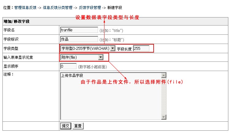 登陸后臺->"插件管理"->"管理反饋字段"->"新建字段",進入如下界面: