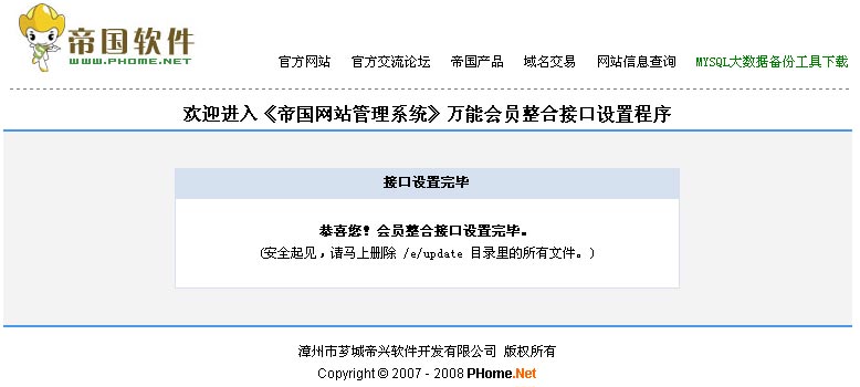 2、運(yùn)行接口程序“e/update/index.php”,依提示設(shè)置好相應(yīng)的信息即可安裝接口完畢;