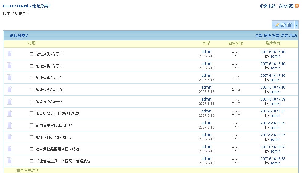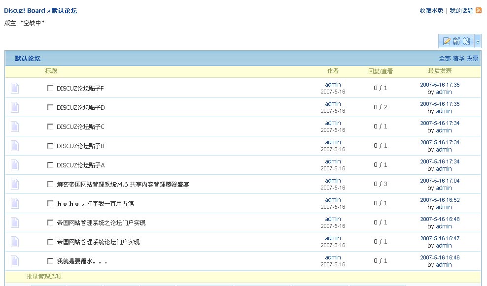圖2:(“默認(rèn)論壇”版塊貼子列表)