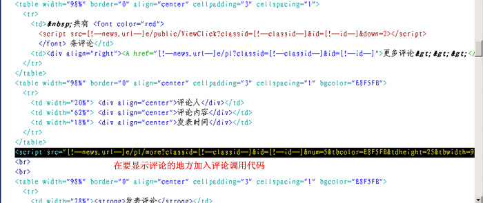 1、修改內(nèi)容模板,在要顯示評(píng)論的地方加上評(píng)論調(diào)用代碼: