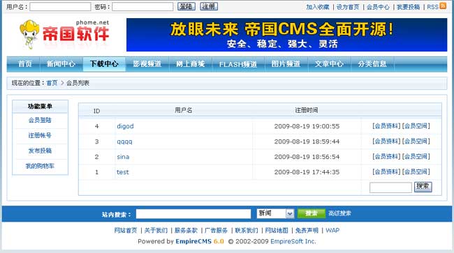 帝國(guó)CMS6.0的會(huì)員列表功能新增了多種會(huì)員列表樣式設(shè)置。今天我們就專門來講解6.0的會(huì)員列表多樣式。