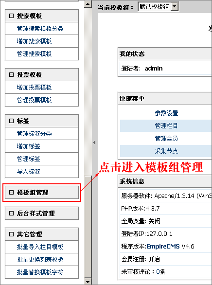 帝國(guó)CMS4.6才有模板導(dǎo)出導(dǎo)入功能。先前用過(guò)的用戶(hù)估計(jì)沒(méi)看到,所以整理了個(gè)導(dǎo)出模板教程。