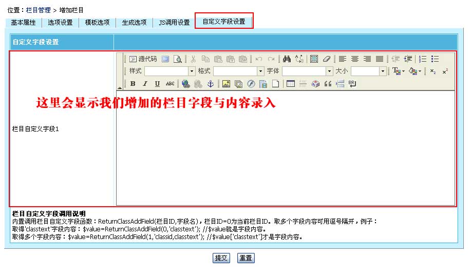 欄目自定義字段使用說明