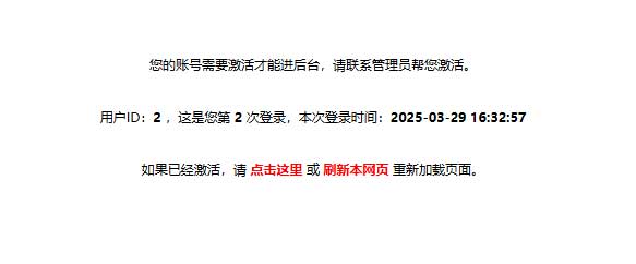 六、登錄者刷新提示登錄需激活網(wǎng)頁(yè),完成后臺(tái)登錄。提示如下圖: