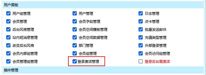 一、增加或修改每次登錄都要激活的用戶組:選擇“登錄后臺(tái)需激活”權(quán)限。