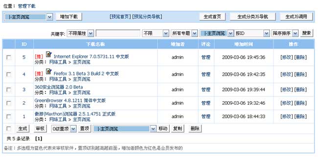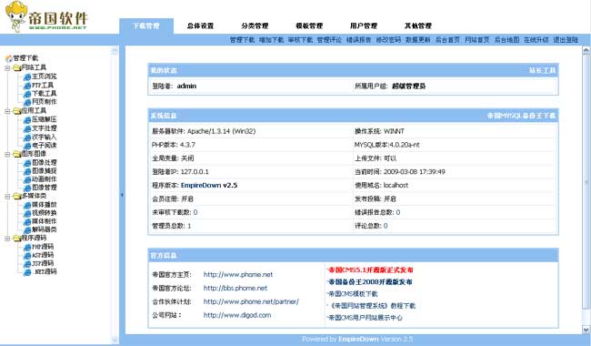 帝國(guó)下載系統(tǒng)2.5開源版后臺(tái)部分截圖