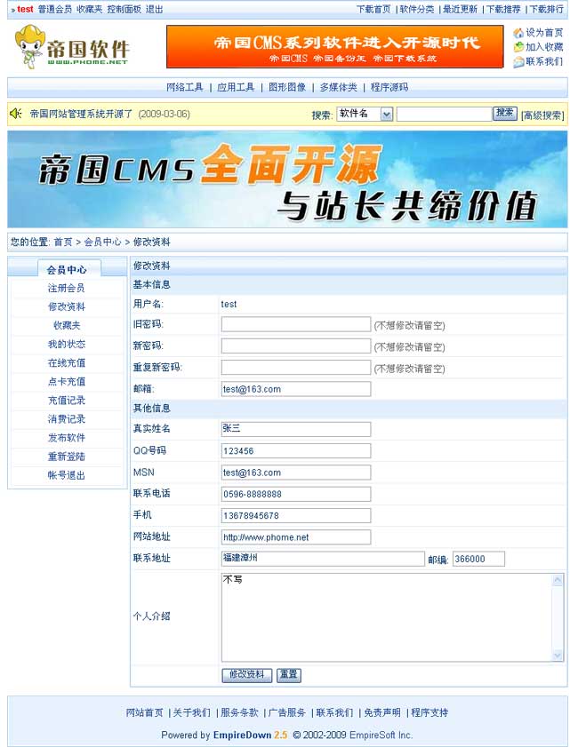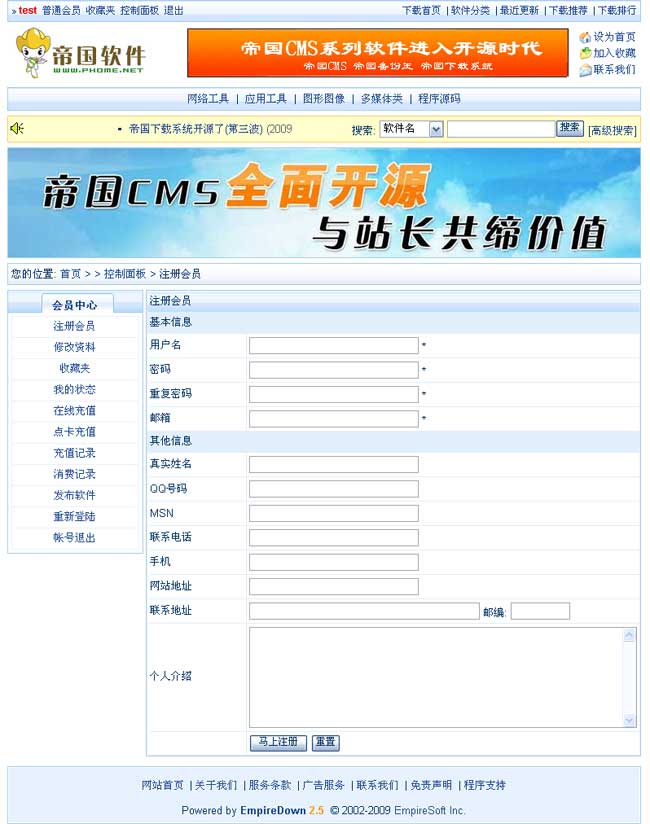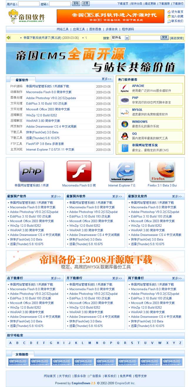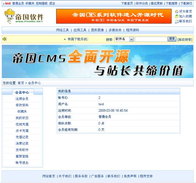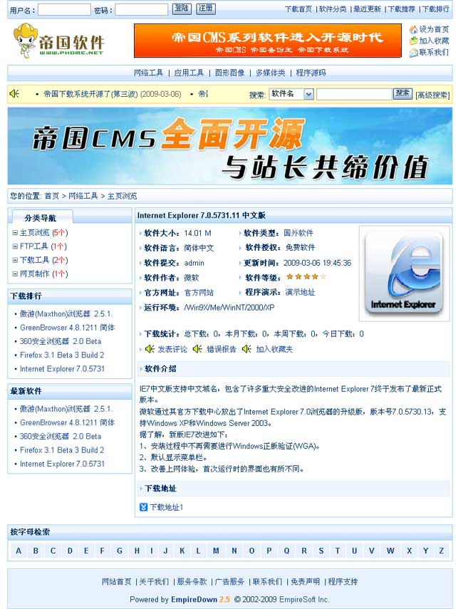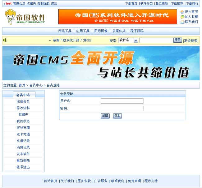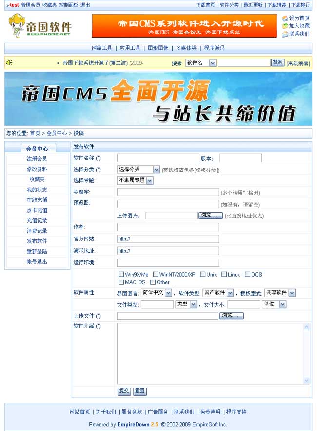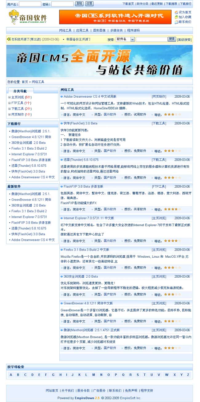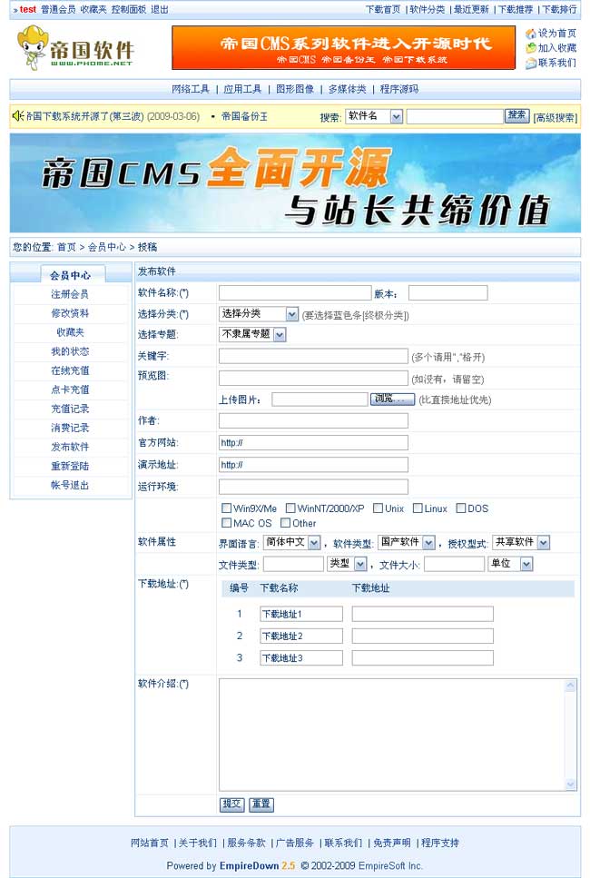 帝國(guó)下載系統(tǒng)2.5開源版前臺(tái)部分截圖