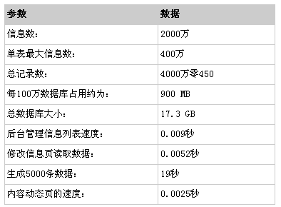 《2千萬數(shù)據(jù)、17.3GB數(shù)據(jù)庫用帝國CMS6.0分表合理存放》分成數(shù)個(gè)篇章對(duì)帝國CMS大數(shù)據(jù)量如何合理存放的進(jìn)行介紹,整個(gè)測試過程都是邊運(yùn)行邊截圖,采用透明、公開的方式供大家監(jiān)督!如果有誰對(duì)測評(píng)過程和測評(píng)結(jié)果有疑問,可以自行參照我們的測試過程搭建類似的測試環(huán)境自己測試和對(duì)比測試結(jié)果。