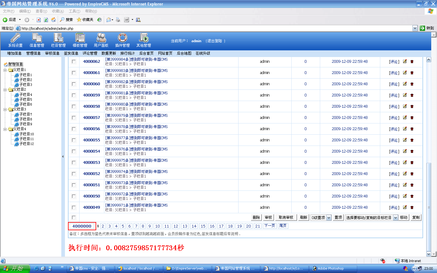 單表無論是50萬還是400萬后臺(tái)管理信息列表速度為:0.009秒