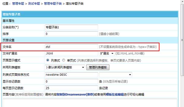 帝國CMS7.5版專題子類支持自定義文件名,更個性化