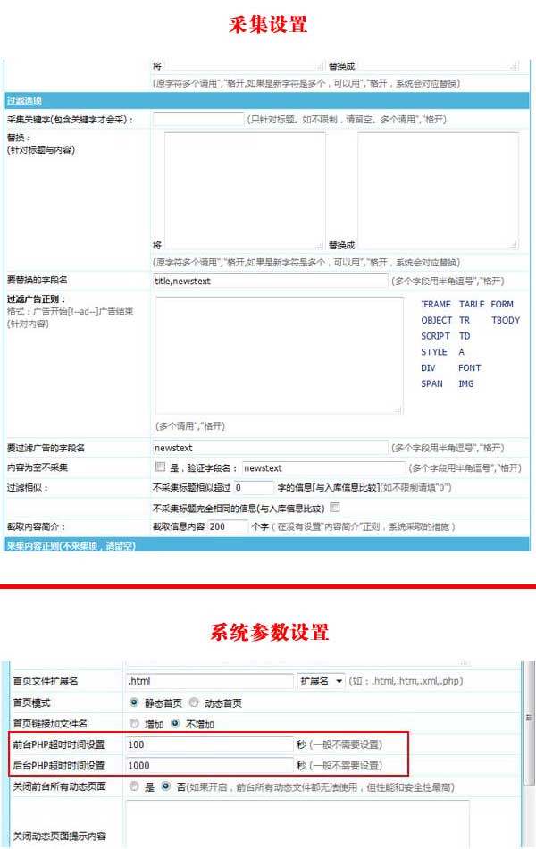 8、帝國(guó)CMS7.5版將PHP超時(shí)時(shí)間設(shè)置前臺(tái)、后臺(tái)分離,方便單獨(dú)對(duì)后臺(tái)超時(shí)時(shí)間改大,防止執(zhí)行或采集過(guò)程中PHP超時(shí)導(dǎo)致中斷。