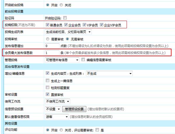 其它說(shuō)明:開(kāi)啟本功能必須將投稿權(quán)限設(shè)置為會(huì)員以上級(jí)別。