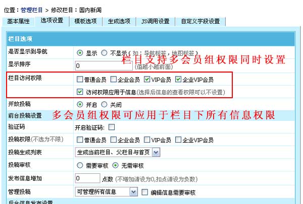 V6.6欄目和信息訪問(wèn)權(quán)限支持限制多會(huì)員組訪問(wèn)