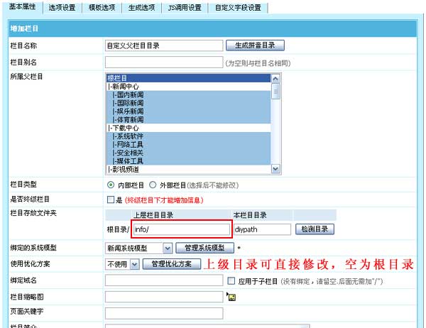 帝國CMS 6.6版欄目支持直接自定義上級存放目錄,更靈活。至此欄目上級目錄、專題上級目錄和內(nèi)容頁存放目錄都可以自定義。