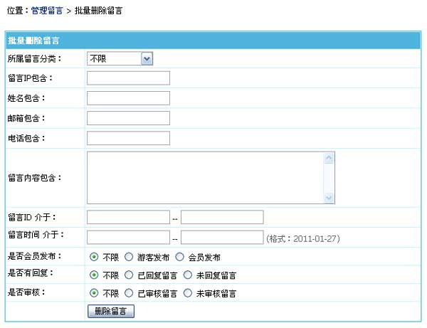 (7)、支持按留言分類刪除留言。