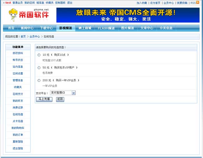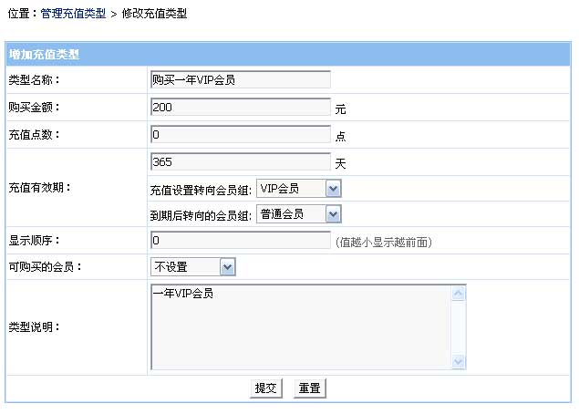 前臺購買充值類型