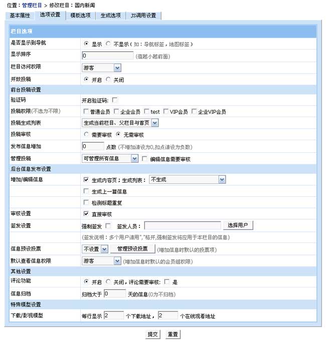 增加終極欄目(選項(xiàng)設(shè)置)