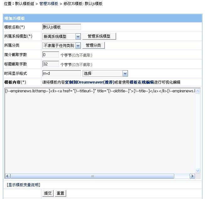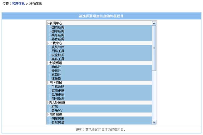 增加終極欄目(模板選項(xiàng))