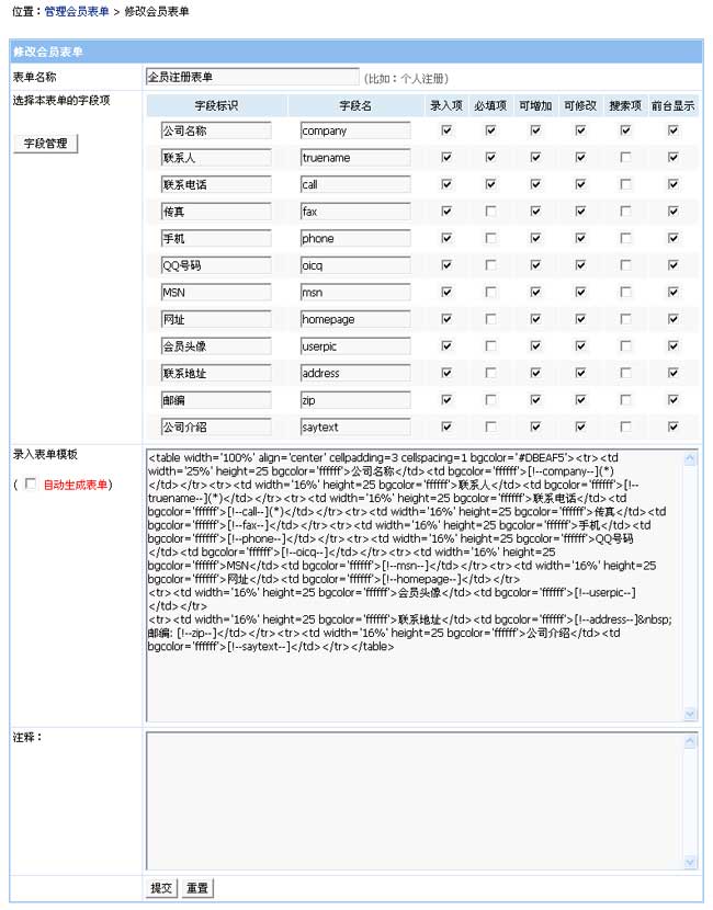 管理字段