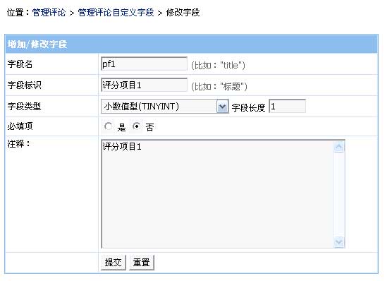 增加評論自定義字段