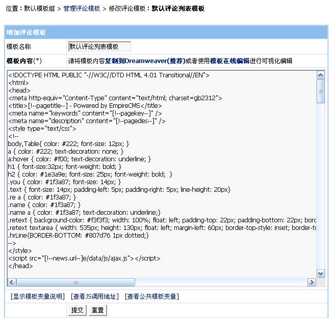 修改評論JS調(diào)用模板