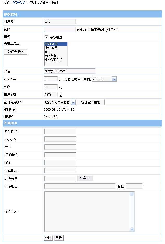 后臺修改個(gè)人資料