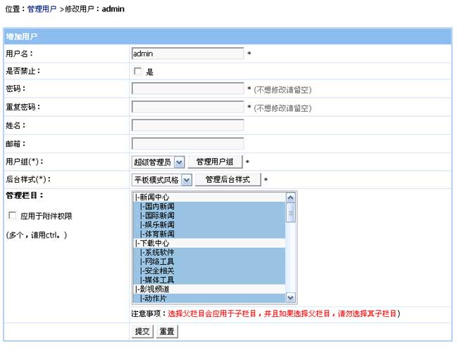 增加父欄目(選項(xiàng)設(shè)置)