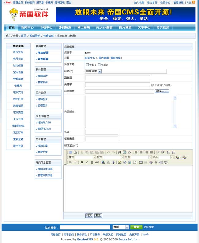 帝國CMS 6.0開源版升級功能部分截圖