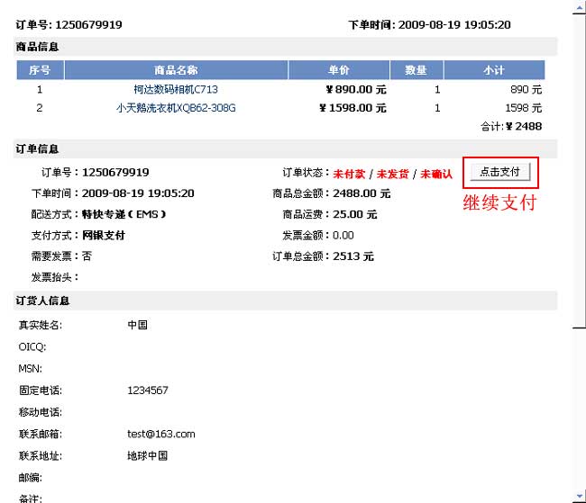 商城訂單未支付成功,可在管理訂單中繼續(xù)在線支付