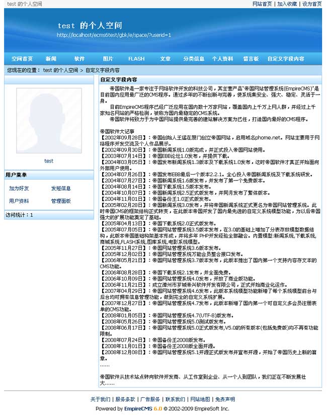 空間新增單頁信息功能,可以顯示會員表某一個(gè)自定義字段內(nèi)容作為單頁顯示的內(nèi)容
