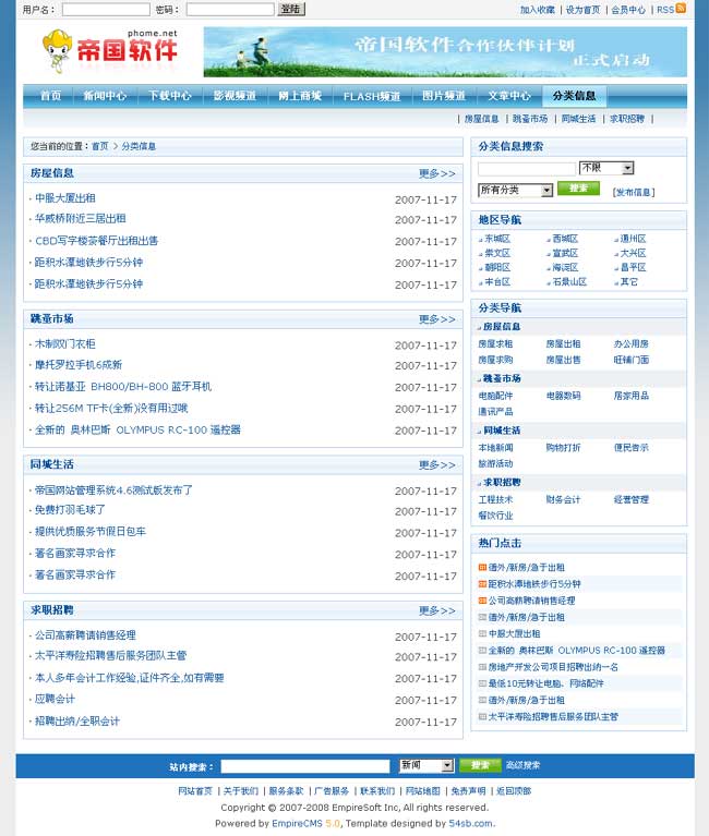 帝國網(wǎng)站管理系統(tǒng)5.0前臺(tái)部分截圖
